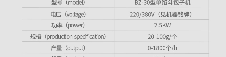 BZ-30型單餡斗包子機(jī),可生產(chǎn)豆沙包、南瓜餅、肉包、小籠包、菜包、圓饅頭、奶黃包、叉燒包、湯包、水晶包等幾十種包餡制品。適用于個(gè)體戶、速凍食品廠、學(xué)校等各種工作場(chǎng)所。可滿足不同客戶群體。免費(fèi)提供工藝技術(shù)。