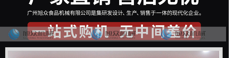 廣州旭眾食品機(jī)械有限公司是一家集科研開發(fā),生產(chǎn)設(shè)計,營銷服務(wù)為一體的現(xiàn)代化生產(chǎn)企業(yè)。現(xiàn)代化生產(chǎn)車間,精湛制造技術(shù),所產(chǎn)機(jī)械歷經(jīng)市場重重考驗,不斷贏得海內(nèi)外客戶的贊譽(yù)。