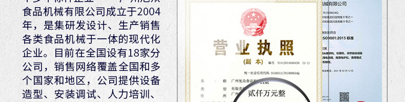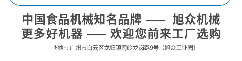 廣州旭眾食品機械有限公司是一家集科研開發,生產設計,營銷服務為一體的現代化生產企業。現代化生產車間,精湛制造技術,所產機械歷經市場重重考驗,不斷贏得海內外客戶的贊譽。