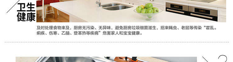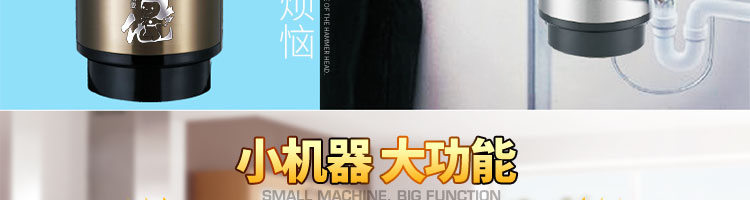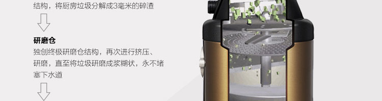 ACLQ56-廚房垃圾處理器,該機器是靠內部結構、零件組合達到處理垃圾的效果,通過碾、壓、擠、磨等系統的處理,在十幾秒內安全將食物垃圾處理成小于3毫米的顆粒,隨著水流排入下水道,使用十分安全。