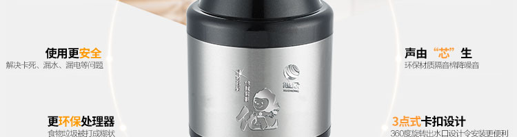 ACLQ75-廚房垃圾處理器,該機采用先進的研磨系統,采用特殊合金錘粉技術,能根據垃圾的強度,自動調節工作位置,處理垃圾的范圍和細度優良,品質性能穩定性強,產品暢銷多個國家和地區,得到客戶的廣泛認可。