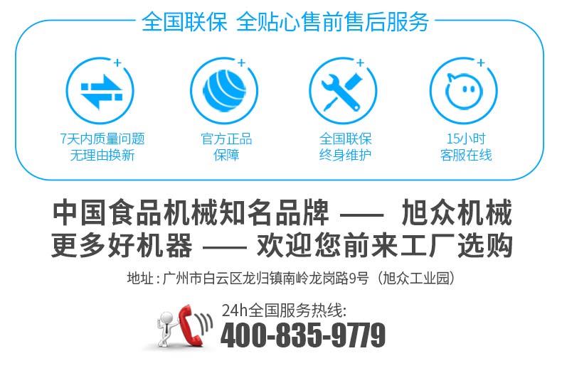 廣州旭眾食品機械有限公司是一家集科研開發,生產設計,營銷服務為一體的現代化生產企業。現代化生產車間,精湛制造技術,所產機械歷經市場重重考驗,不斷贏得海內外客戶的贊譽。