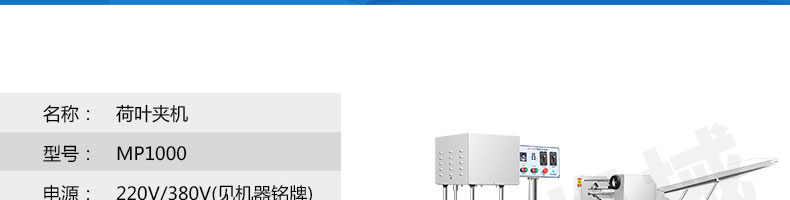 MP1000荷葉夾機,可生產各種荷葉夾、蝴蝶夾、肉夾饃、也可生產刀切饅頭等面食產品。適用于個體戶、食品廠、學校等各種工作場所,可滿足不同客戶群體。免費提供工藝技術。
