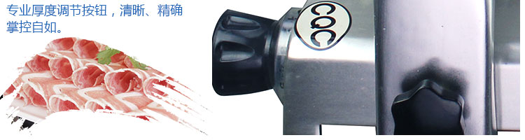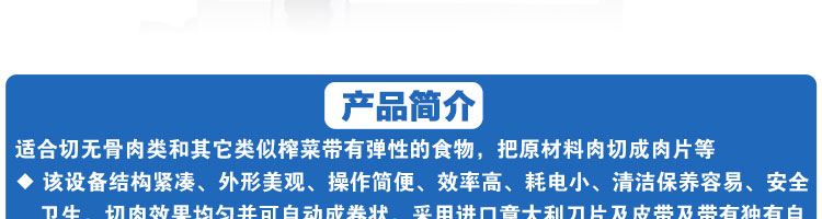 臺(tái)式全自動(dòng)切片機(jī),適合切無(wú)骨肉類(lèi)和其他類(lèi)似榨菜帶有彈性的食物,把原材料肉切成肉片,并可自動(dòng)成卷狀。可切牛肉片、羊肉片等