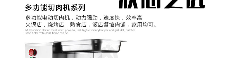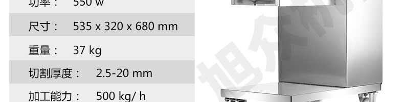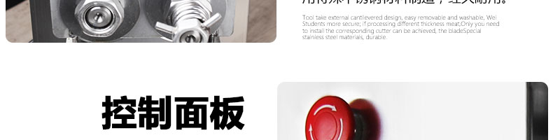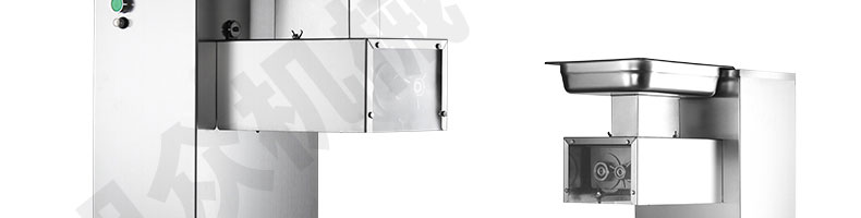 XZ-QE切肉機,是一款可方便移動的肉類加工設備,配置單層刀具一次性切肉片,二次切肉絲,再切成粒。底座設置有滑輪,移動靈活,輕松便捷;刀具采取外置懸臂式設計,拆洗方便,衛生更有保障;配置多種刀具,可加工不同厚度的肉片,實現一機多用;機內裝有安全保護開頭,刀具外露時,機器自鎖不能啟動,以保安全;刀片用特殊不銹鋼材料制造,經久耐用;卸下的刀具,不用清洗直接放置在6攝氏度以下的冰箱里,刀具余肉不發臭。