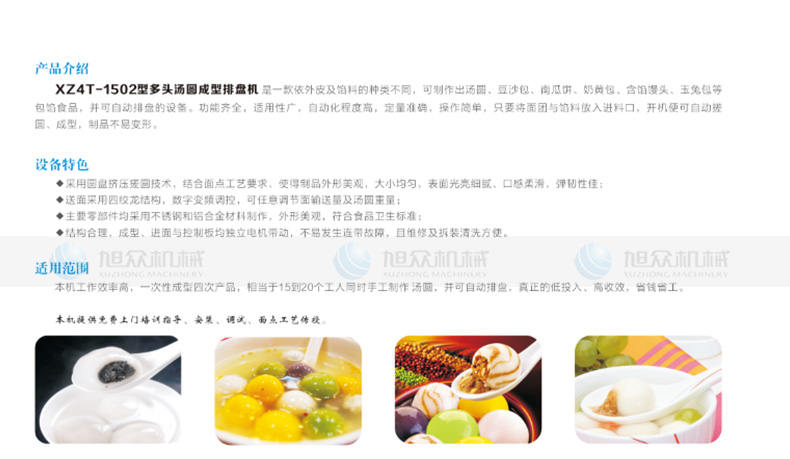 XZ4T -1502多頭湯圓成型排盤機,湯圓機,本機只要將面團放入進料口,開機便可自動搓圓、成型的設備,一次性成型四次產品,制品不易變形,工作效率高